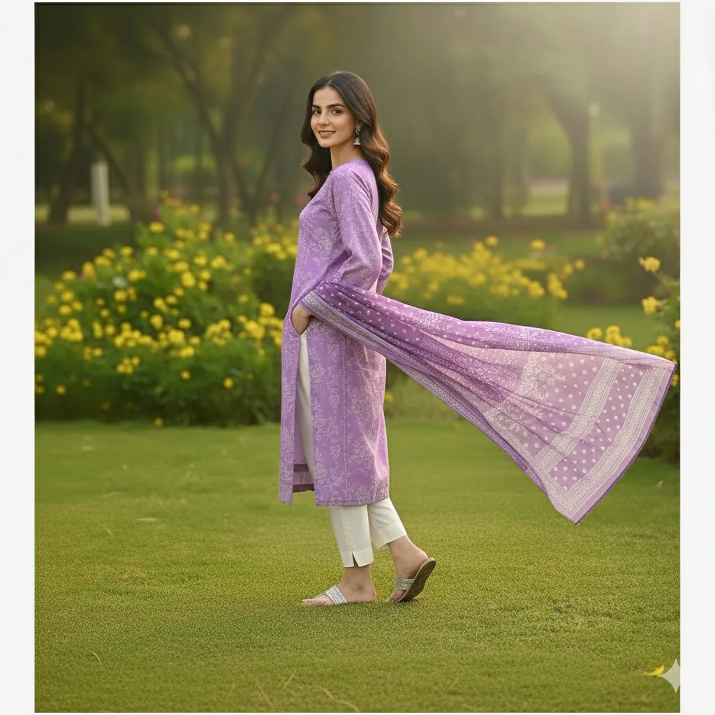 - ✔ Elegant Floral Printed Shirt & Dupatta